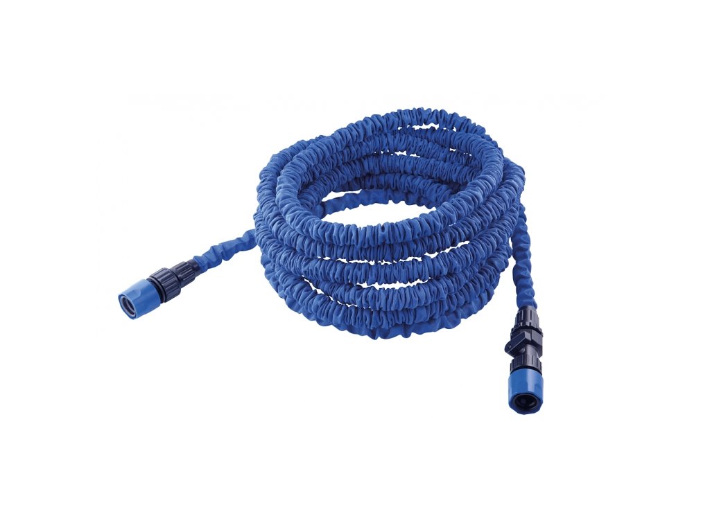 Zahradní natahovací flexi hadice Novaservis Cobra 3 – 7,5 – 23 metrů se roztahuje se tlakem vody téměř na trojnásobek své délky ze 7,5 na 23 metrů. Délka bez tlaku vody je 7,5 metrů.