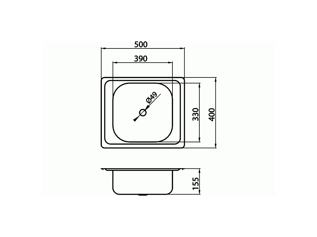 Vnější rozměr 40x50 cm a hloubka 15,5 cm. Kuchyňský dřez s přepadem. Součástí balení je sifon NSP 49. Prodloužená záruka 5 let.