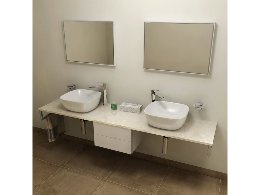 Desky doporučujeme doplnit umyvadly na postavení. Otvory pro odpad umyvadla a stojánkovou vodovodní baterii lze vyvrtat před montáží desky korunkovým vrtákem. Na přání je možné otvory připravit už ve výrobě dle dodaného výkresu. Taktéž lze zhotovit libovolný rozměr desky až do 250 cm. V tomto případě je cena na dotaz, pro kalkulaci ceny kontaktujte, prosím, naši podporu.