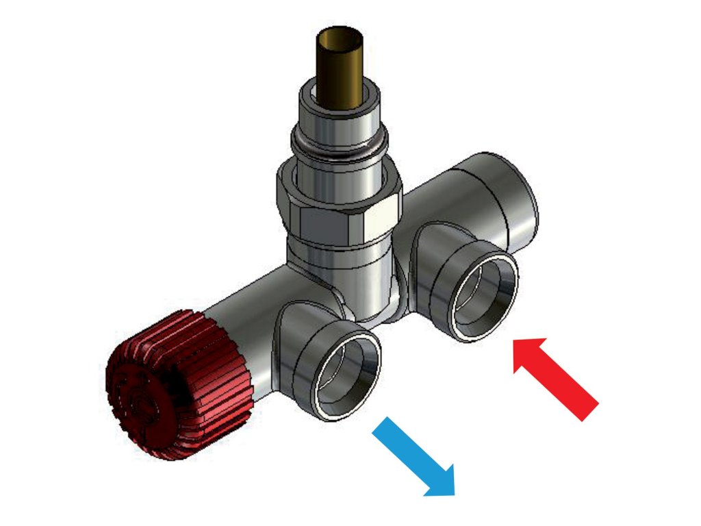Ventil je určen pro připojení radiátorů na rozvody TUV s vývodem ze zdi. Nelze kombinovat s elektrickou topnou tyčí.