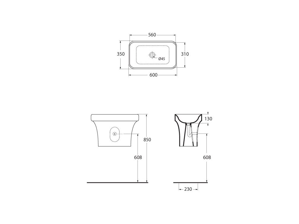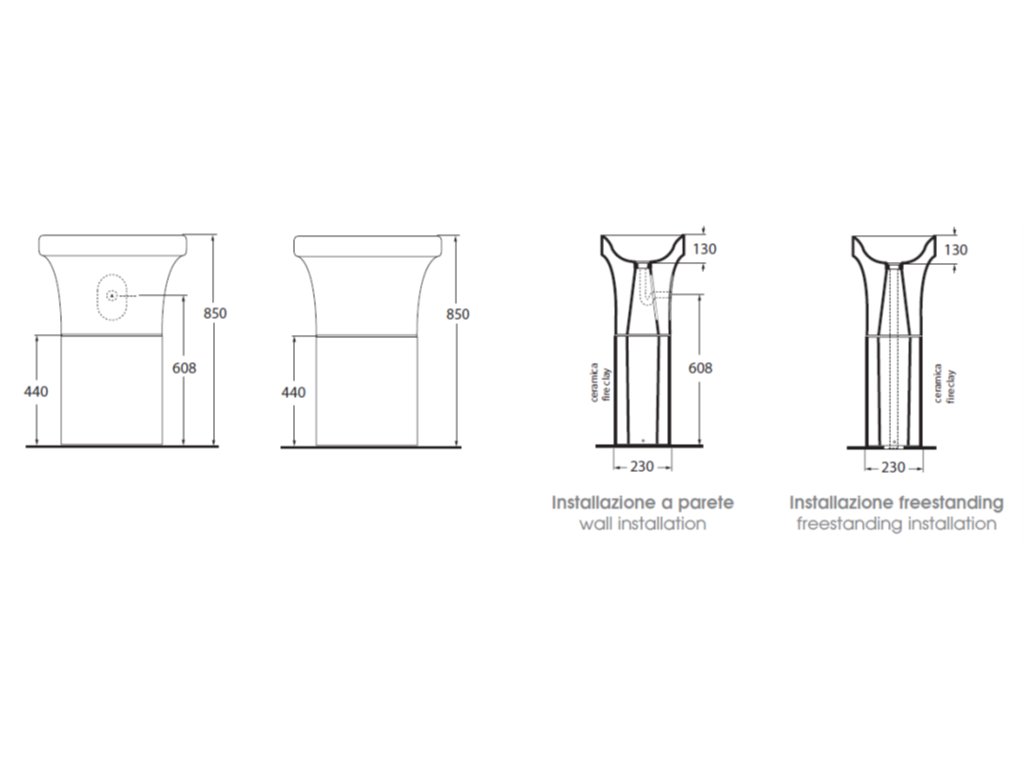 Umyvadlo nemá a otvor pro stojánkovou baterii, pro elegantní řešení můžete použít umyvadlové podomítkové baterie.