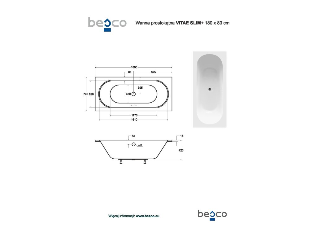 Obdélníková vana VITAE SLIM+ vyniká vysoce kvalitním zpracováním a spolehlivou funkčností všech součástí a materiálů.