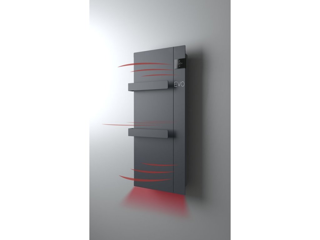 Elektrická otopná tělesa ONSEN EVO jsou vybavena unikátní technologií ohřevu Dual-Therm, která uvolňuje teplo konvekcí i sáláním současně. Konvekční proudění, kdy se chladný vzduch od podlahy ohřeje v tělese, vychází vrchem a zahřívá koupelnu rovnoměrně a tiše. Sálání vytváří příjemné teplo a zároveň suší ručníky. ONSEN EVO jsou navíc vybavena turboventilátorem, který koupelnu vyhřeje během několika minut.