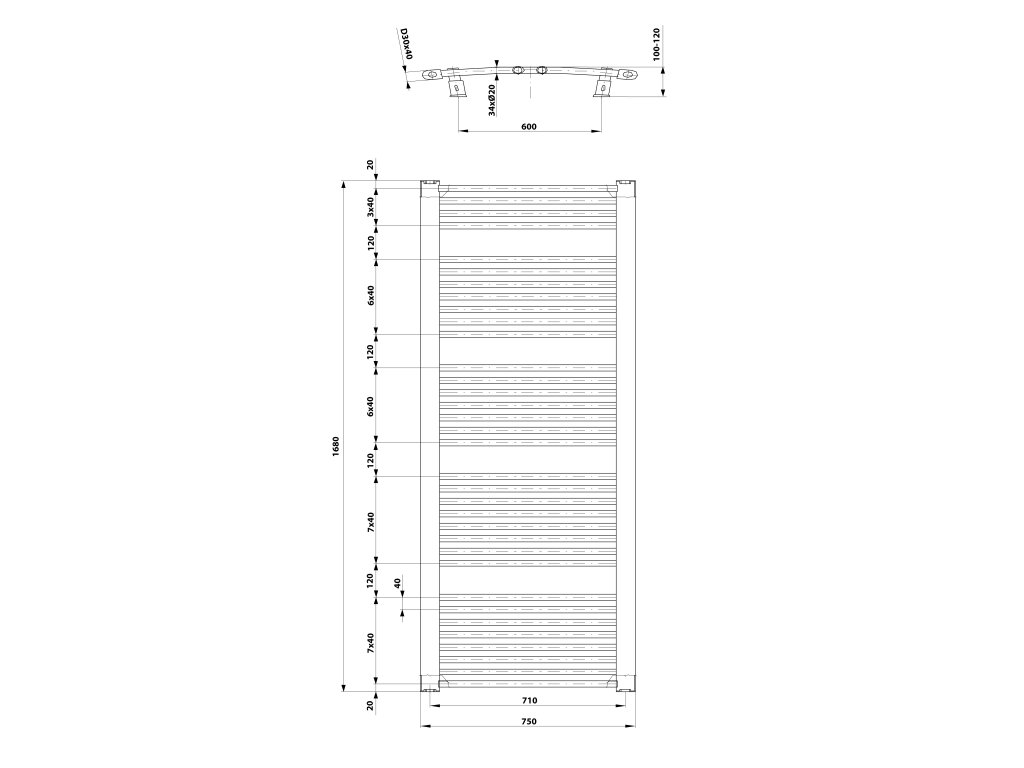 ORBIT otopné těleso s bočním připojením 750x1680 mm; bílá