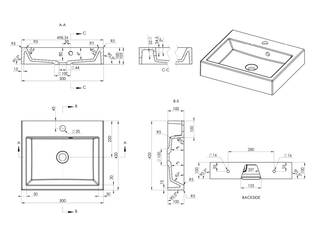 ORINOKO umyvadlo, litý mramor, 50x42cm, bílá