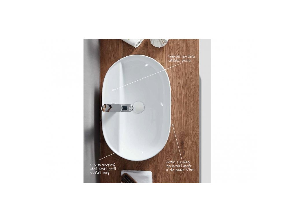 Oválné umyvadlo Ovale 61 cm pro položení na desku- Pěkný tenký design