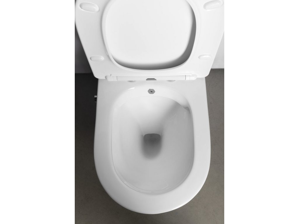 Rimless (NoRim) – toalety bez tradičního oplachového kruhu. Hladký povrch bez dutin a záhybů. Oplachová voda vytéká rozdělovačem vody pouze ze zadní části WC mísy a díky speciálnímu tvaru keramiky dokonale opláchne vnitřní prostor. Výhodou je snadná údržba a čištění WC mísy.