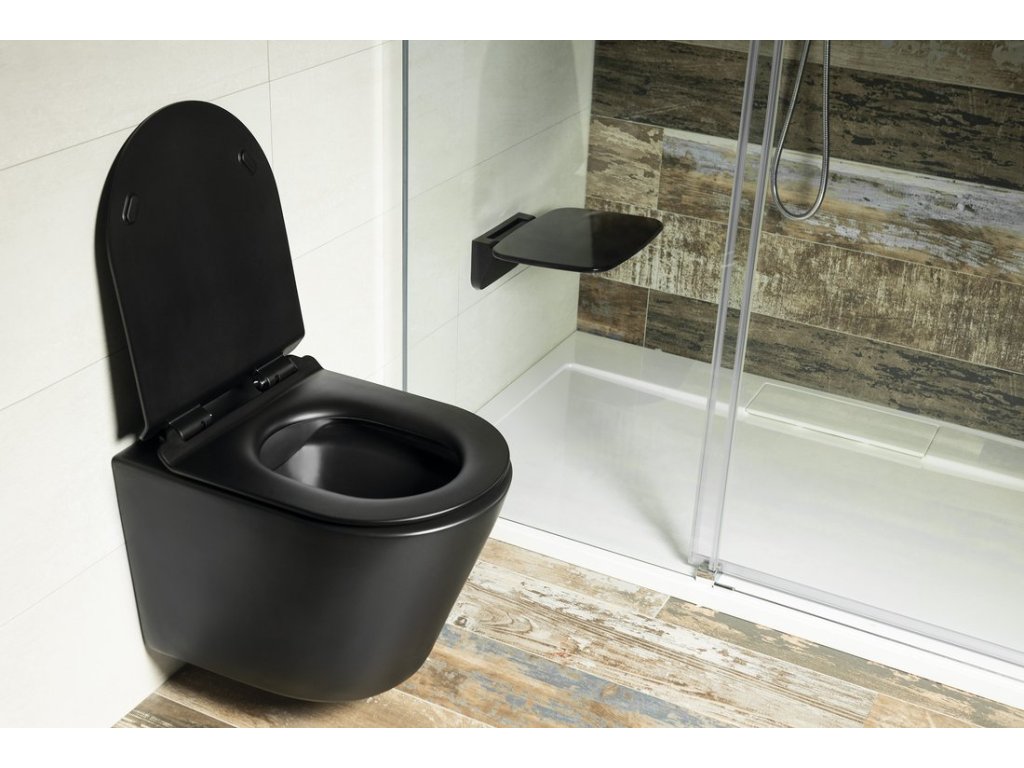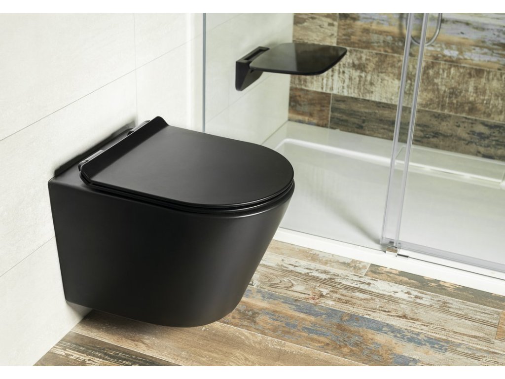 PACO závěsná WC mísa, Rimless, 36x53cm, černá mat