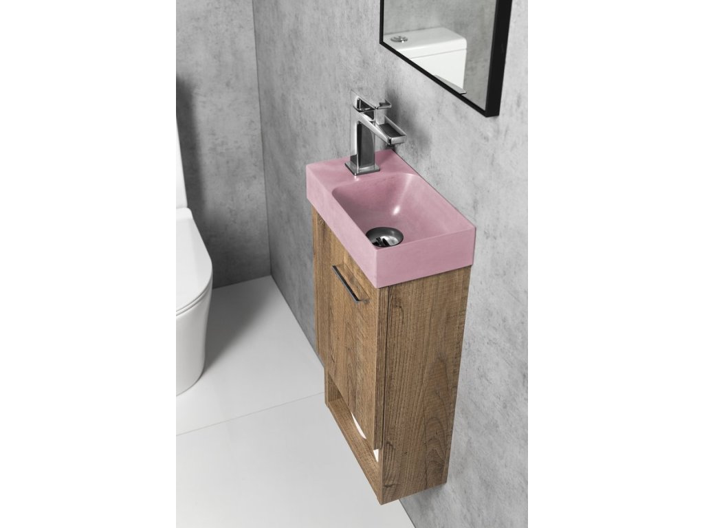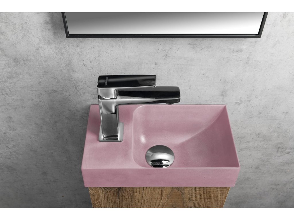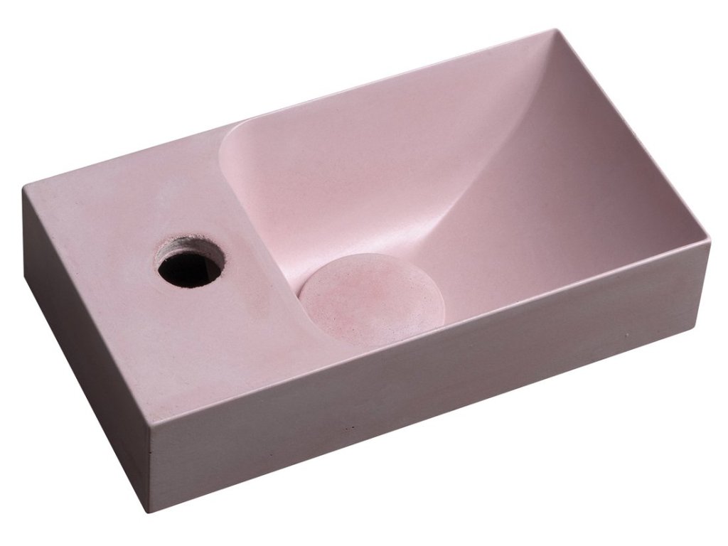 PICCOLINO betonové umývátko 30,8x17cm, baterie vlevo, růžová mat