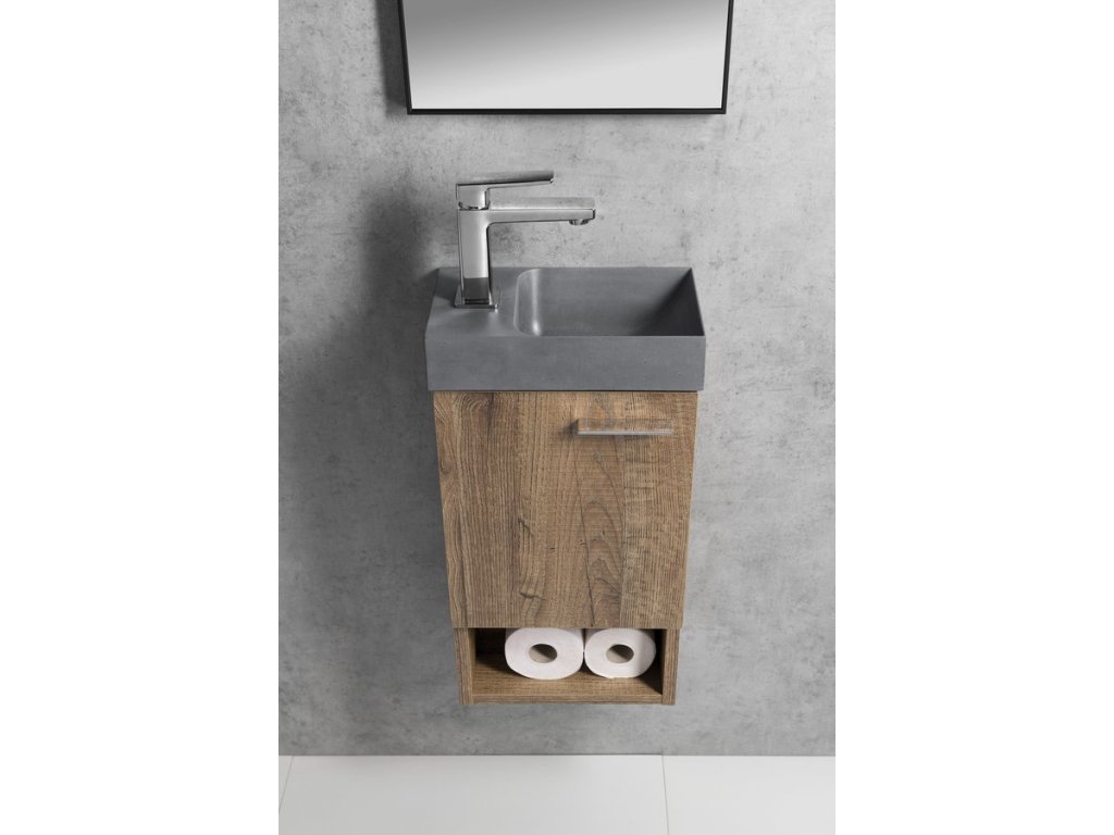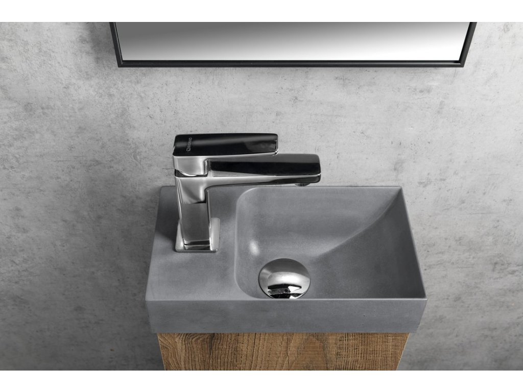 PICCOLINO betonové umývátko 30;8x17cm; baterie vlevo; šedá mat