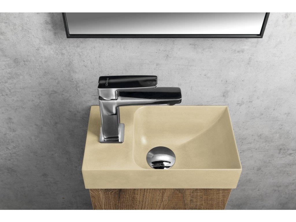 PICCOLINO betonové umývátko 30,8x17cm, baterie vlevo, žlutá mat