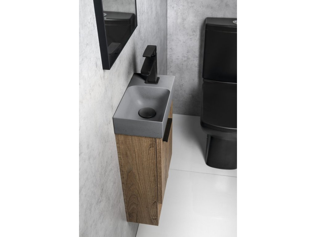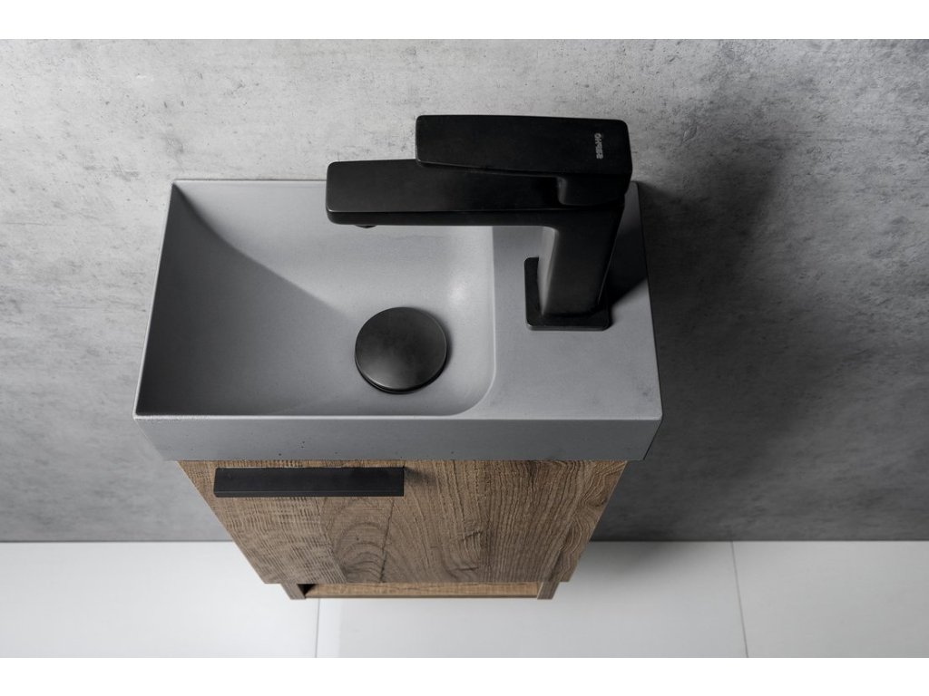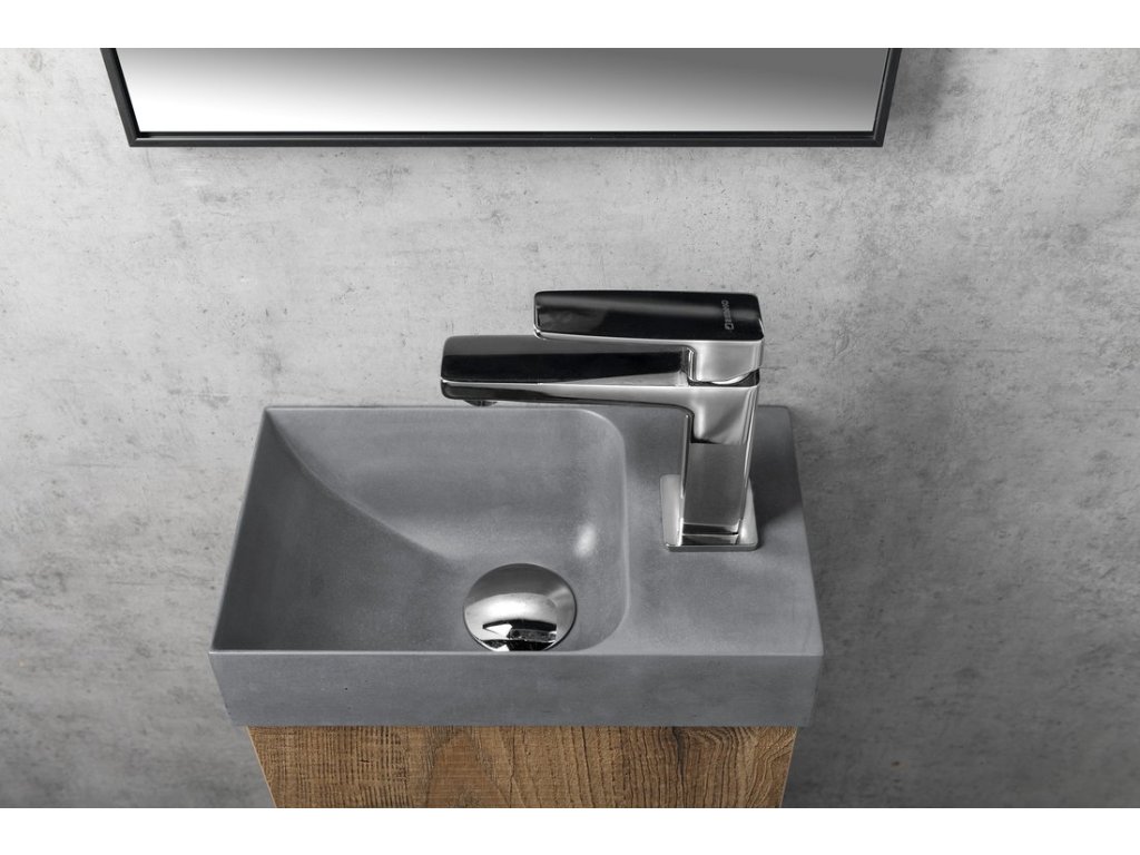 PICCOLINO betonové umývátko 30,8x17cm, baterie vpravo, šedá mat