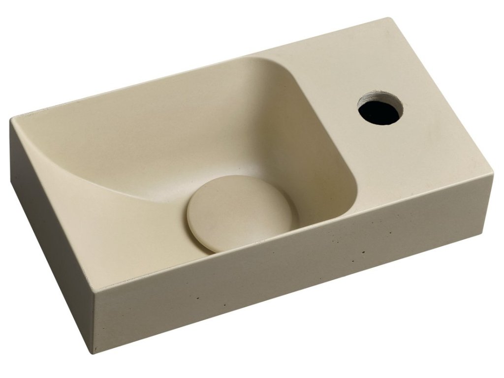 PICCOLINO betonové umývátko 30,8x17cm, baterie vpravo, žlutá mat