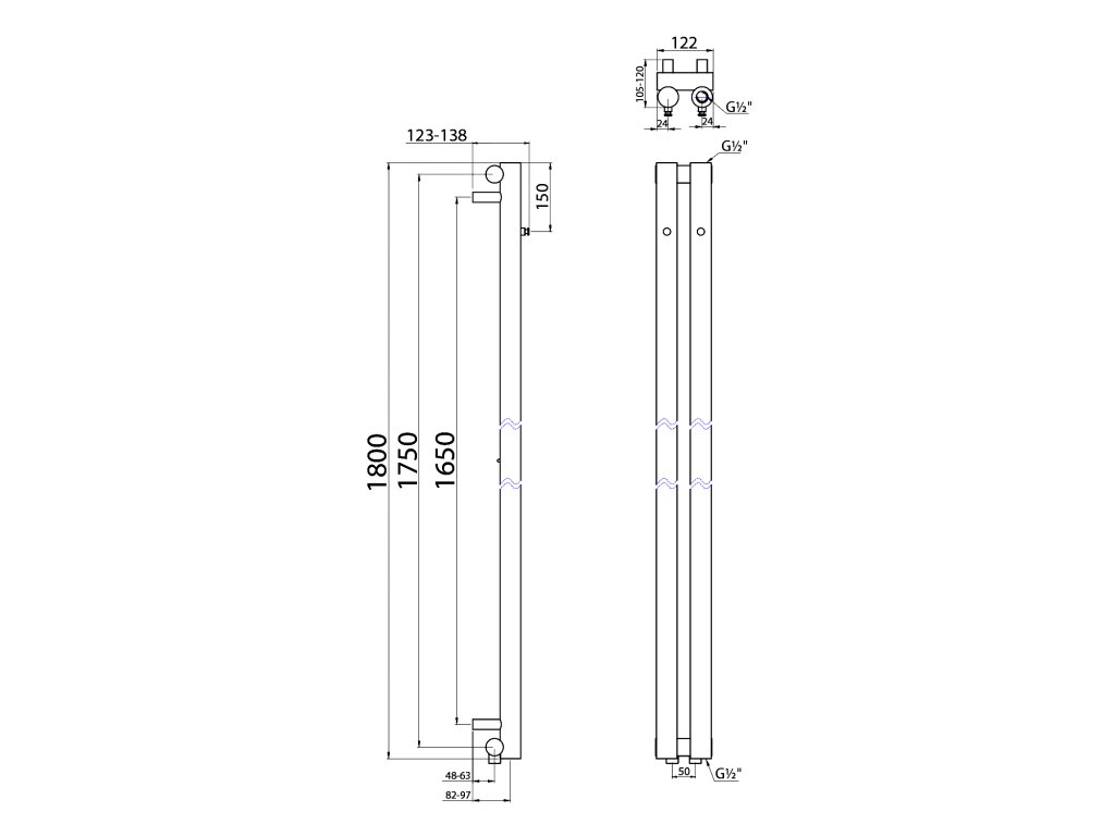 PILON otopné těleso 122x1800mm; se dvěma háčky pro ručník; chrom