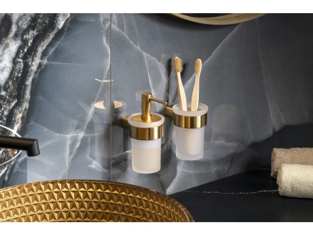 PIRENEI dávkovač mýdla 110 ml; mléčné sklo; zlato mat