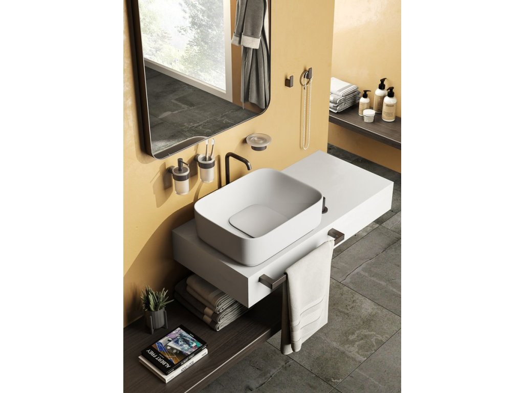 Snad inspirován pohledem na krásu Pyrenejí navrhl designér sérii doplňků PIRENEI. Masivní základna, kombinace přímých linií a zaoblených hran je spojením elegance a majestátnosti. Na výběr jsou doplňky v provedení v chromové, matné černé, matné bílé, gun metal, zlaté a matné zlaté variantě.