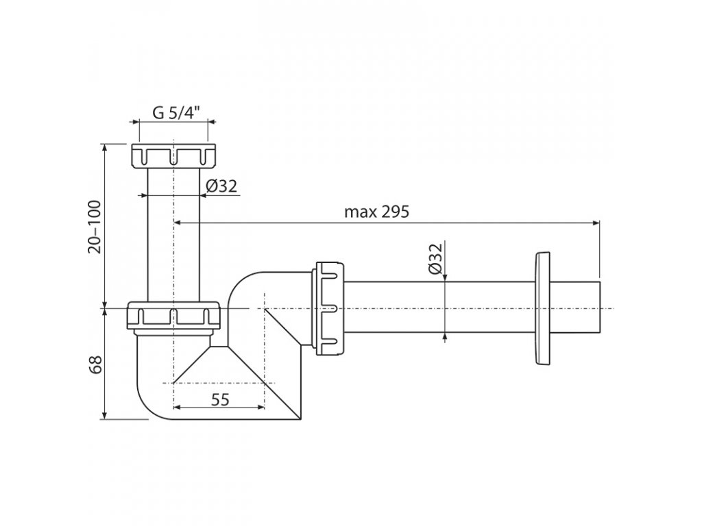 Alcadrain Pisoárový sifon 1"1/4, nízký, odpad 32 mm, bílá (dříve Alcaplast)