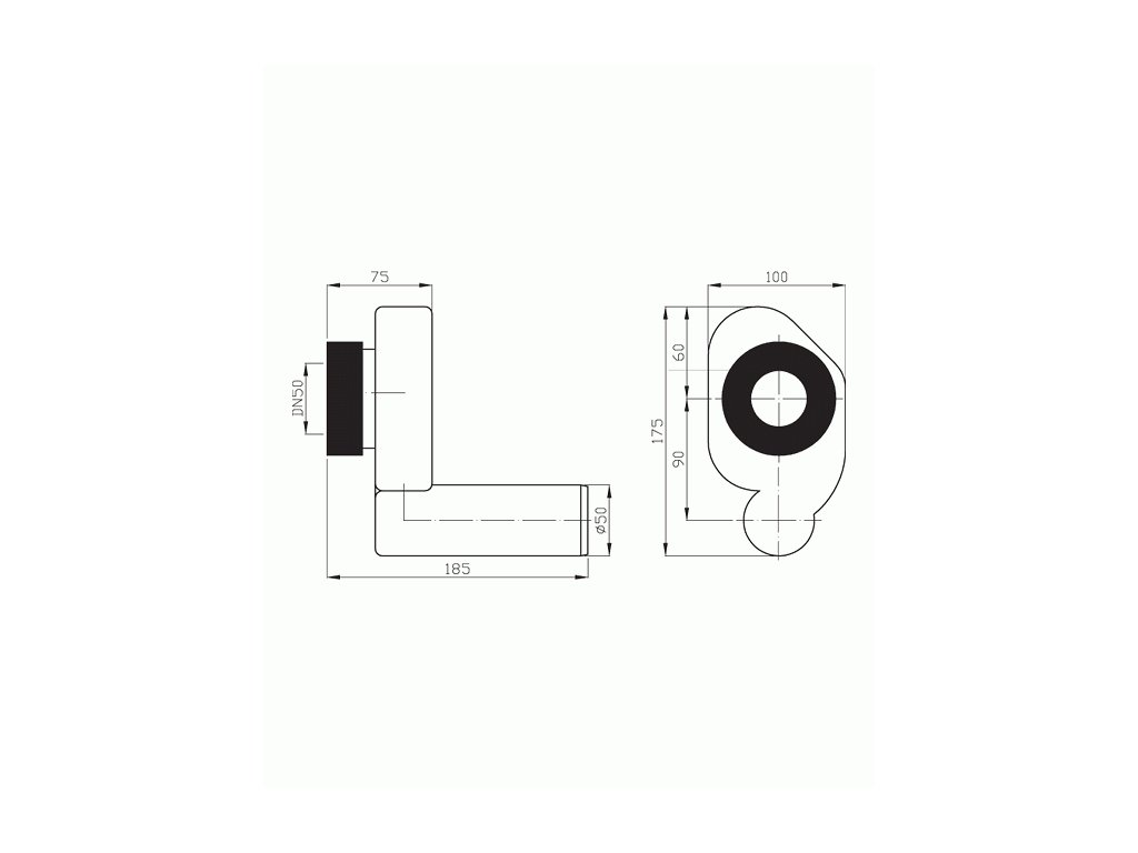 Pisoárový sifon ESO0550Odsávací sifon s gumovou manžetou 50 mm pro pisoáry se zadním skrytým odtokem. Sifon ESO0550 je se zadní odtokovou trubkou.