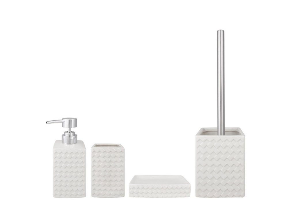 Série PLEDO je tvořena kelímkem, mýdelníkem, WC štětkou a dávkovačem mýdla.
