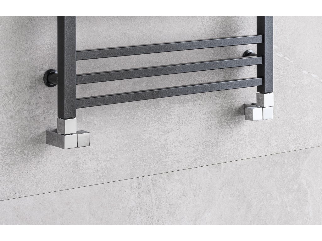 Ventil CUBE-CE – CHROMSada CUBE-CE je určena pro napojení koupelnových radiátorů s vývodem na rozteč radiátoru, pouze pro centrální vytápění. Designová sada Cube se skládá z regulační hlavice a uzavíratelného šroubení. Součástí sady jsou také krycí rozety připojovacího šroubení.