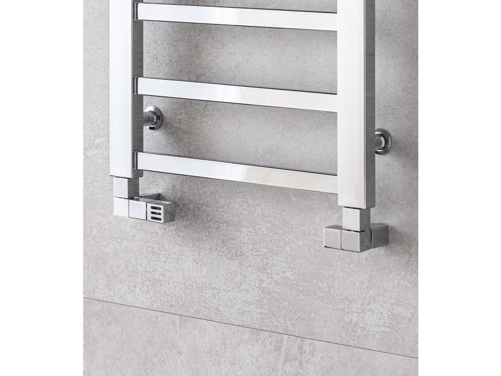 Ventil CUBE CET L – CHROM s termostatickou hlavicíSada CUBE-CET je určena pro napojení koupelnových radiátorů s vývodem na rozteč radiátoru, pouze pro centrální vytápění. Designová sada se skládá z regulační hlavice a uzavíratelného šroubení. Podle umístění termostatické hlavice se sady rozdělují na pravé a levé. Součástí sady jsou také krycí rozety připojovacího šroubení.