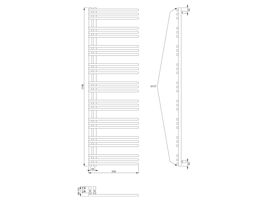 Klasické trubky s kruhovým profilem sestavené v designový radiátor, který lze díky středovému připojení s roztečí 50 mm kombinovat s ventily z naší nabídky.