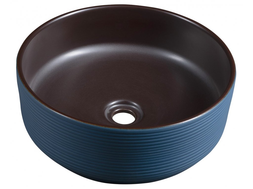 PRIORI keramické umyvadlo na desku, Ø 41 cm, modrá/hnědá