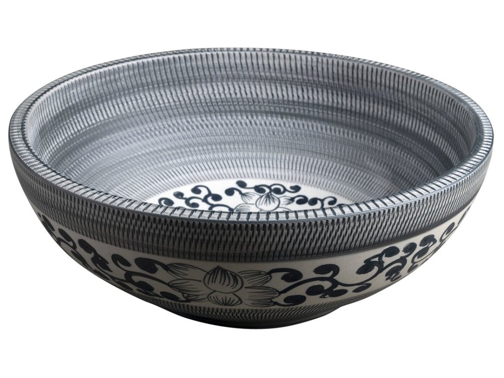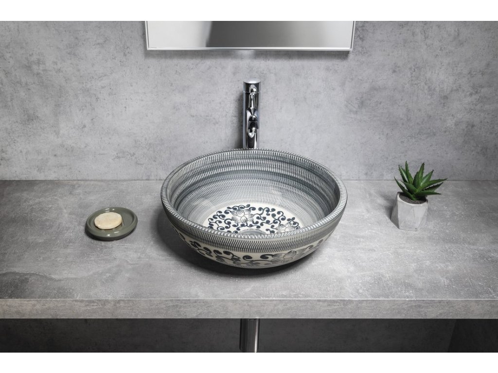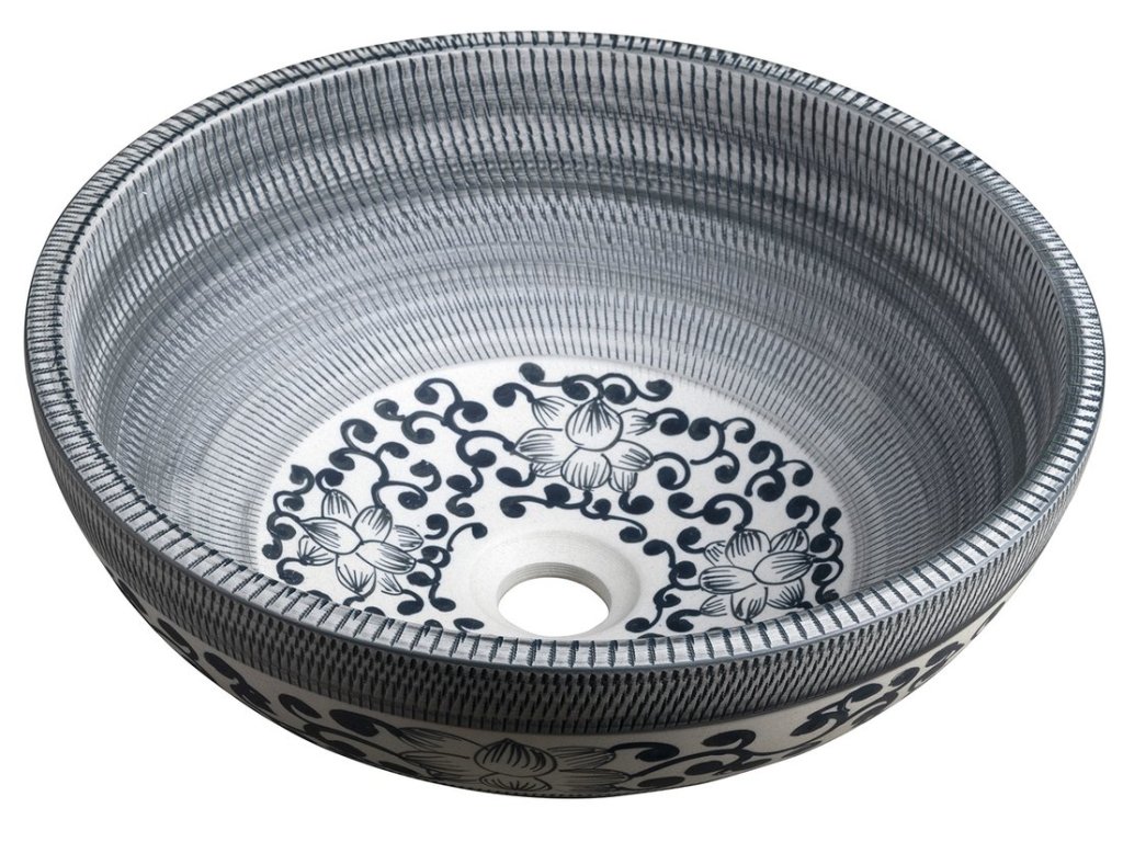 PRIORI keramické umyvadlo na desku, Ø 41 cm, modrá se vzorem