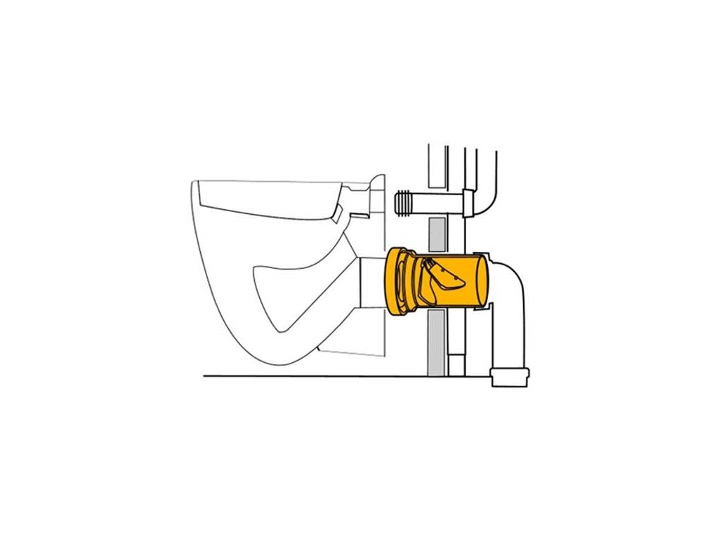Připojovací odpadní kus DN 90 pro závěsné wc se zpětnou klapkou proti vytopení a potkanům (proti zpětnému vzdutí a hlodavcům)