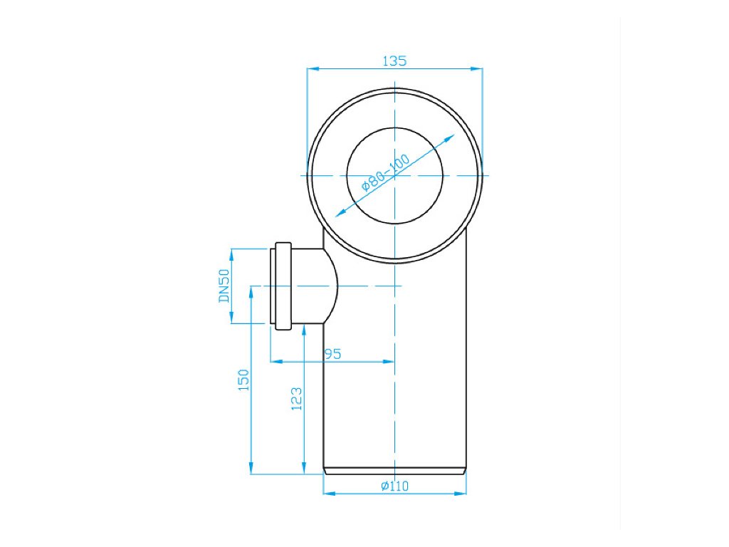 Dopojení k WC – koleno 90° x 110mm s odbočkou 50 mm vlevo- s odbočkou 50 mm na levé straně
