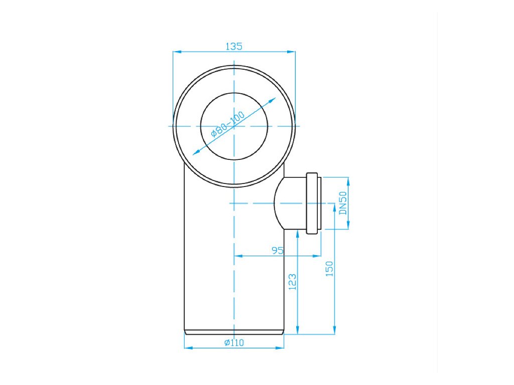 Dopojení k WC – koleno 90° x 110mm s odbočkou 50 mm vpravo- s odbočkou 50 mm na pravé straně