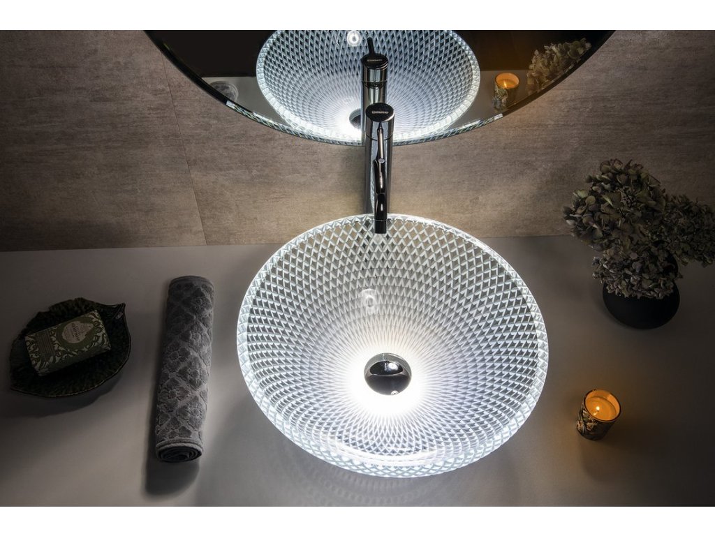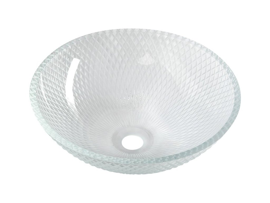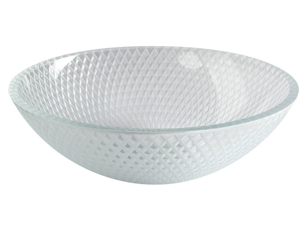 PUKETA skleněné gravírované umyvadlo na desku Ø 42cm; čirá