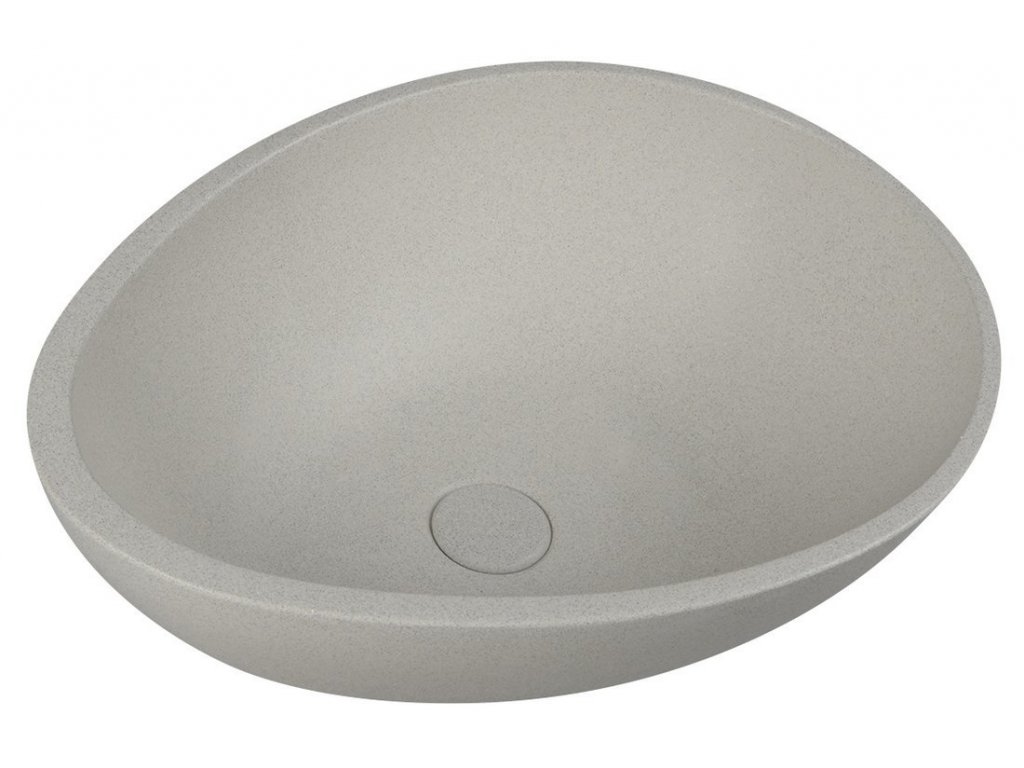 PUNC betonové umyvadlo na desku, včetně výpusti, 53x39cm, bílý pískovec