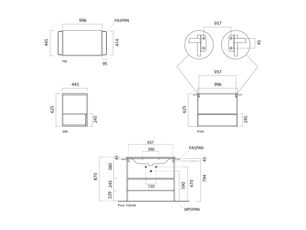 PURA konstrukce pod umyvadlo 102,6x46cm, černá mat/ořech