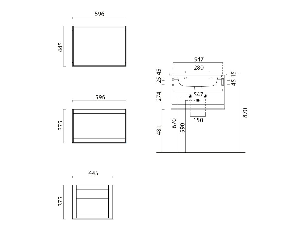 PURA konstrukce pod umyvadlo 62x46cm; černá mat