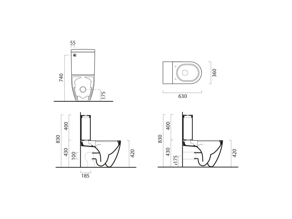 PURA WC kombi, Swirlflush, spodní/zadní odpad, bílá dual-mat