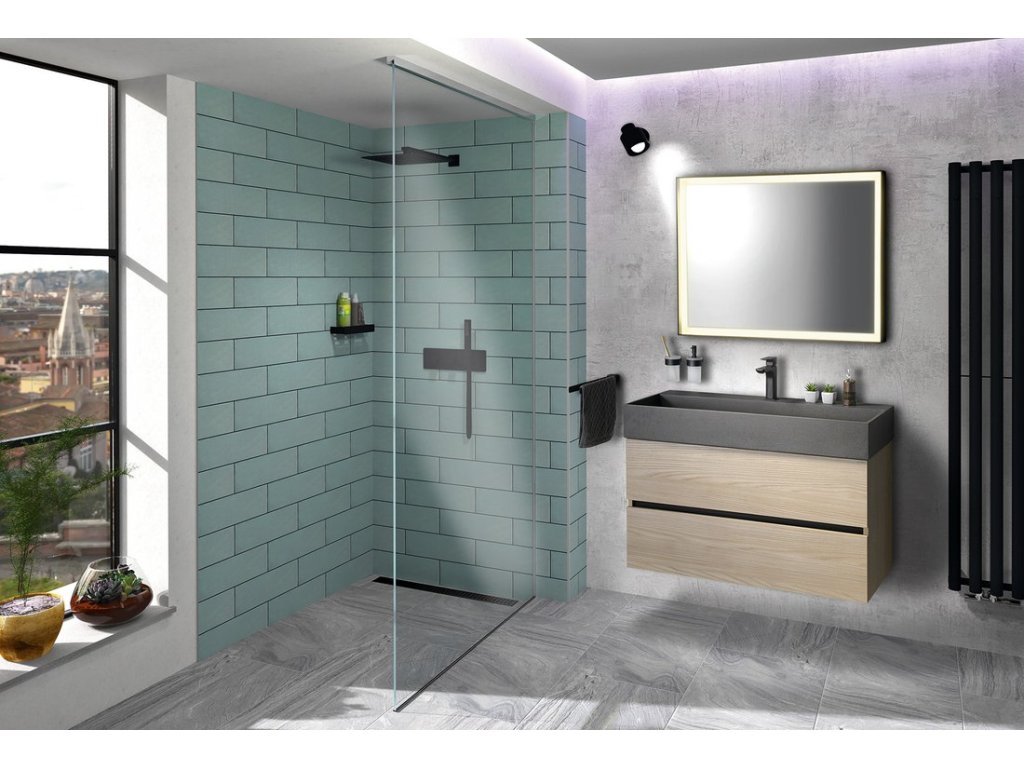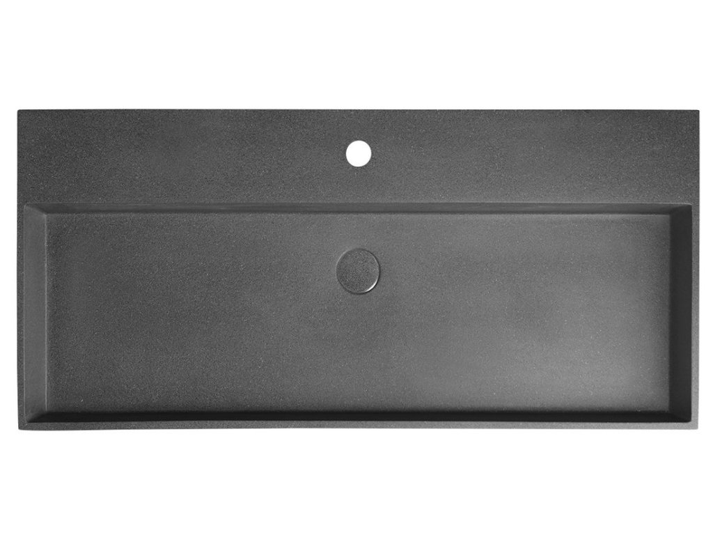 QUADRADO betonové umyvadlo včetně výpusti, 96x44cm, černý granit