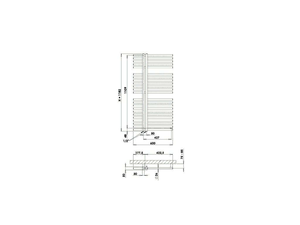 Radiátor Kronos 600×1182 mm – BÍLÁ-LAKKronos znamená zmenu pro vaší koupelnu. Konstrukce tohoto radiátoru nabízí výhodu jednoduchého zavěšení ručníků ze strany. Na 2 svislé trubky o rozměrech 50×30 mm navazují příčné trubky o průměru 26 mm s nenápadným 3-bodovým systémem uchycení na stěnu. Připojovací rozteč je 50 mm.