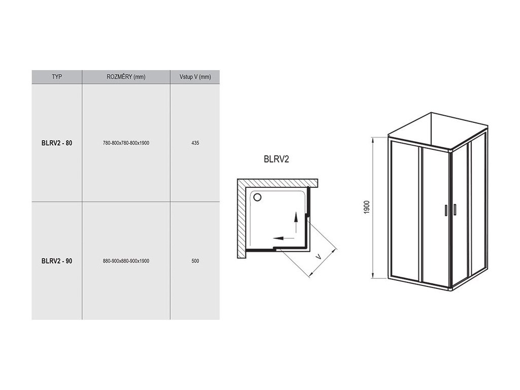 Montuje se do obloženého rohu koupelny na vaničky RAVAK Angela, Perseus, Perseus Pro, Perseus Pro Flat, Perseus Pro Chrome, Perseus Pro 10° nebo přímo na podlahu se zabudovaným odtokovým žlabem či podlahovou vpustí. Použitím nastavovacího profilu BLNPS lze výrobek rozšířit o 20 mm.