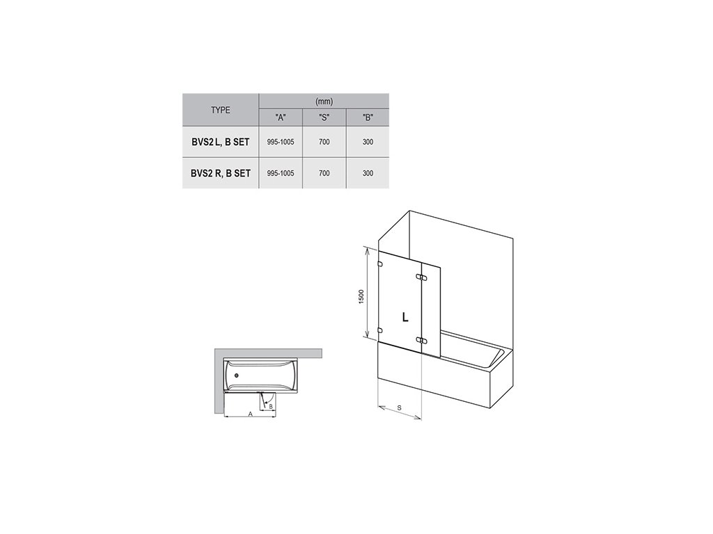 Vanová zástěna BVS2VANOVÁ ZÁSTĚNA DVOUDÍLNÁ S POHYBLIVOU ČÁSTÍ