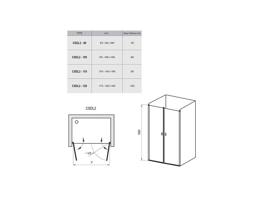 Sprchové dveře Chrome CSDL2SPRCHOVÉ DVEŘE DVOUDÍLNÉ
