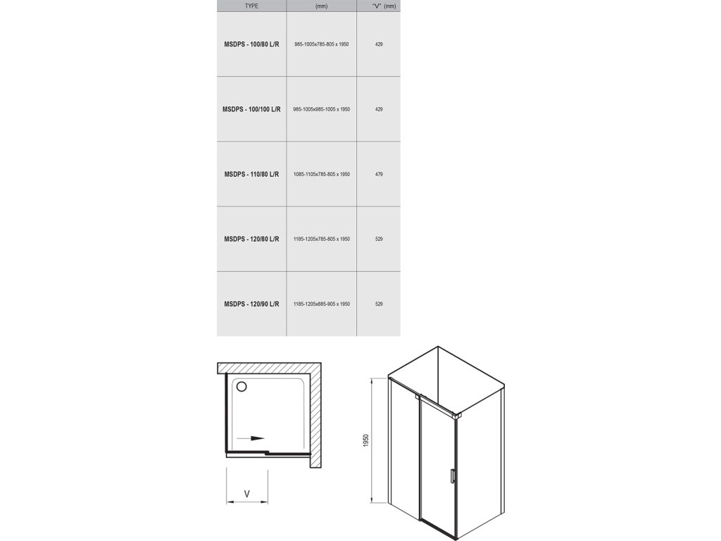- montážní variabilita 1185 –1205×785 – 805×1950 mm