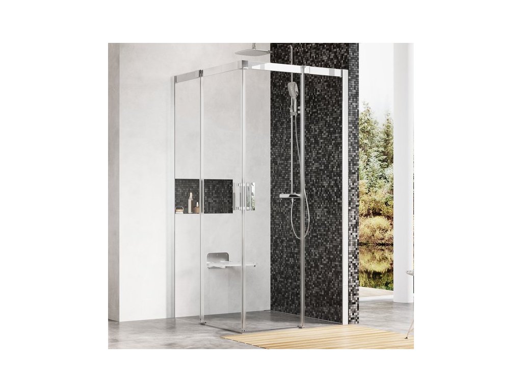 SPRCHOVÝ KOUT ROHOVÝ ČTYŘDÍLNÝStyl, který mluví sám za sebe. Luxusní čtvercový posuvný kout v nezaměnitelném designu, kterému dominují tvary čtverce a obdélníku na výrazné horní a boční liště. Nejvyšší možná kvalita materiálů i zpracování.