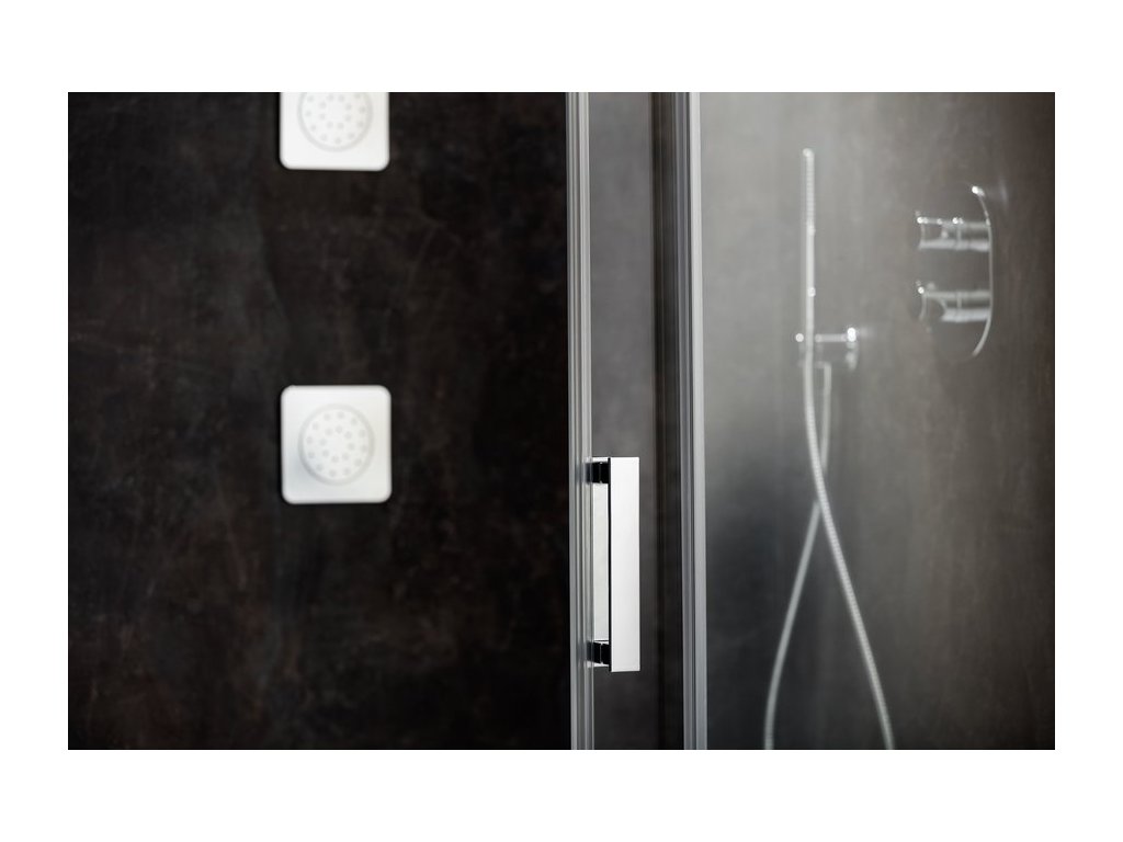 SPRCHOVÝ KOUT ROHOVÝ ČTYŘDÍLNÝStyl, který mluví sám za sebe. Luxusní čtvercový posuvný kout v nezaměnitelném designu, kterému dominují tvary čtverce a obdélníku na výrazné horní a boční liště. Nejvyšší možná kvalita materiálů i zpracování.