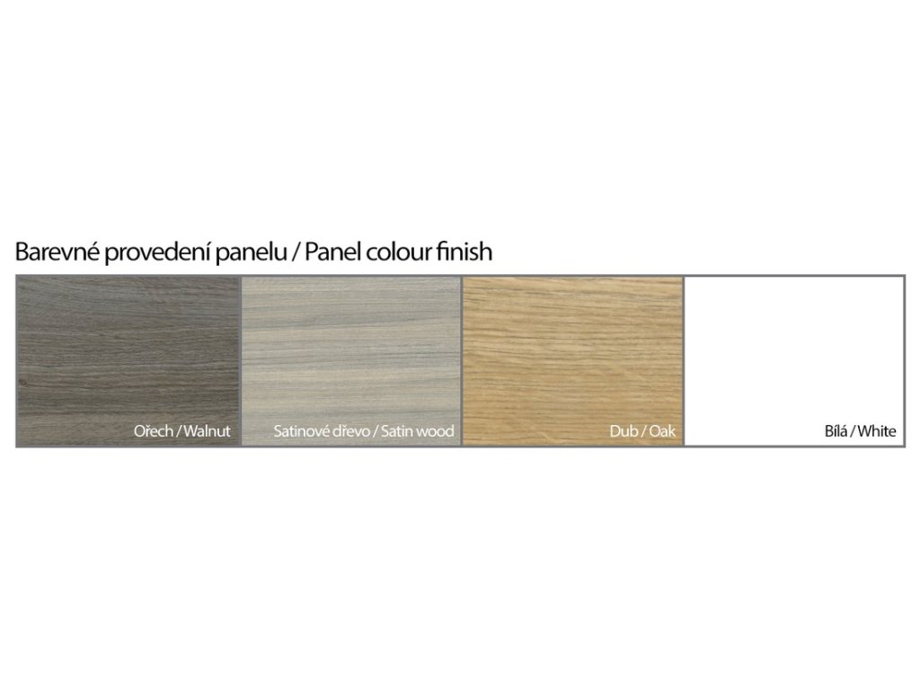 - barevné provedení: bílá, ořech, dub, satinové dřevo