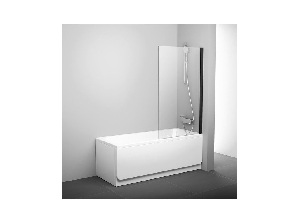 Ravak PVS1 - 80 BLACK +TRANSPARENT, vanová pevná stěna 80 cm, černý profil, čiré sklo
