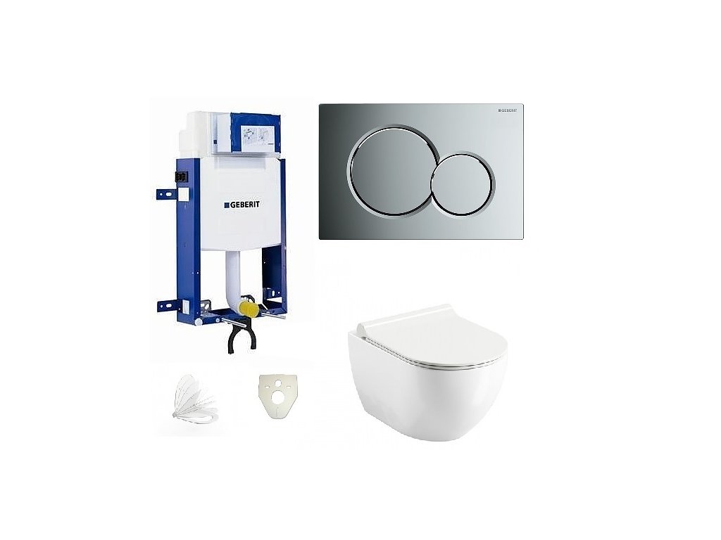 Ravak Set Uni Chrome RimOff X01535 + Slim Soft Close X01550 + Geberit kombifix 110.302.00.5 + Sigma 01 lesklý chrom tlačítko - SET(110.302.00.5, 115.770.21.5, G4/463, X01535, X01550)
