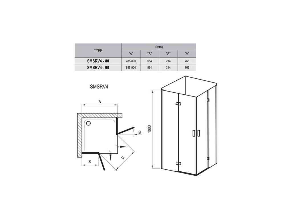 - montážní variabilita 785–800×785–800×1900 mm
