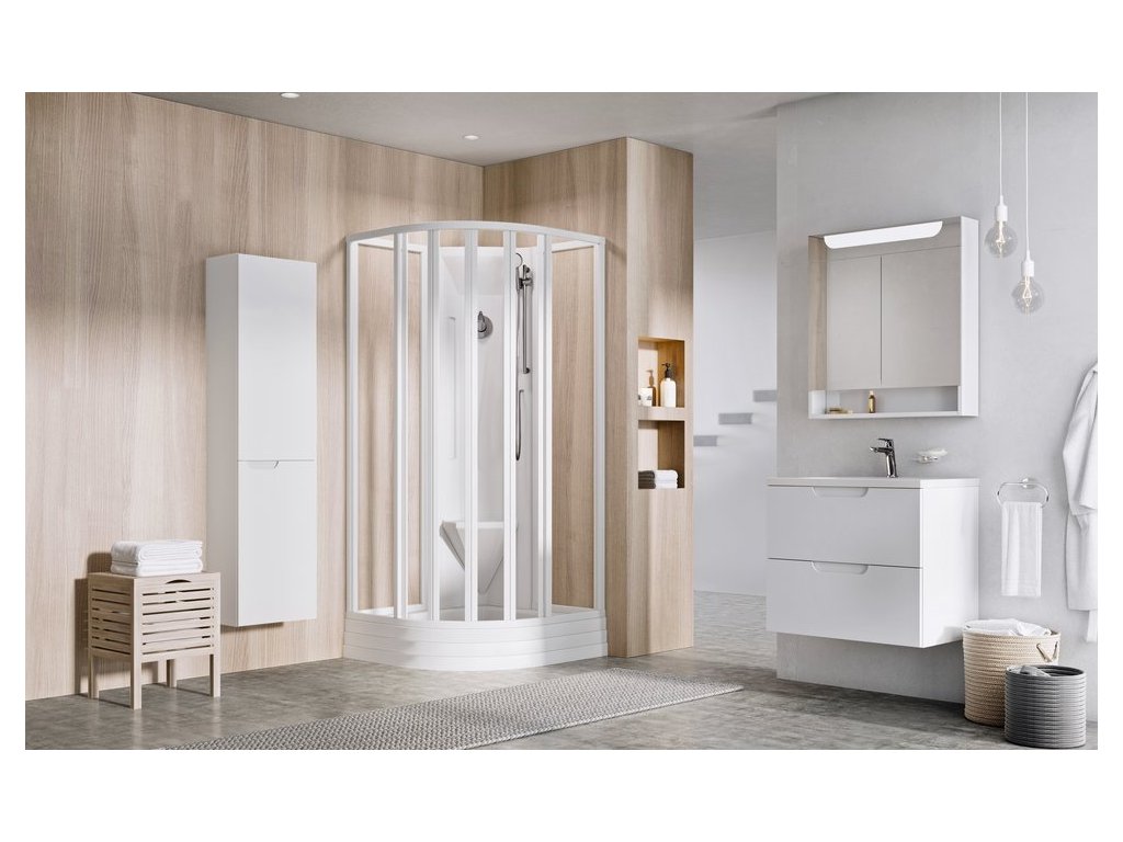 Ravak sprchový čtvrtkruhový box ASBKP6-80 TRANSPARENT, bílý rám s čirým sklem