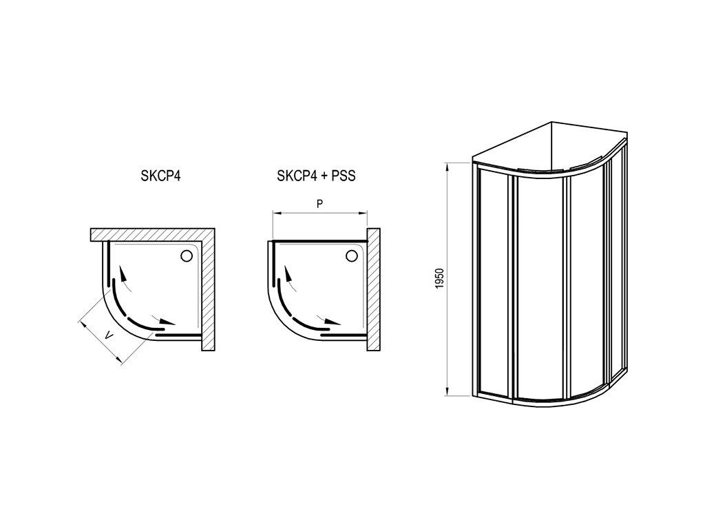 | Tvar: | Čtvrtkruhové sprchové kouty |